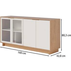 Buffet Bancada 160 cm 4 Portas V1524, é um móvel cheio de personalidade e indicado para deixar sua sala de jantar ou estar, ainda mais charmosa. Estrutura em MDP e MDF de 15 e 25 mm, que proporcionam melhor acabamento nas bordas e superfícies, contando com pintura em acabamento UV (Fosco). Composto portas articuladas com dobradiças metálicas, sendo duas em vidro, e duas em MDF, divisórias internas, puxadores metálicos dourados, e acompanham sapatas plásticas. É ideal para armazenar aparelhos de jantar, travessas e copos. Seu tampo também pode ser utilizado como apoio para objetos decorativos, bebidas ou até mesmo como bancada para acomodar utensílios para servir drinques e petiscos. Este móvel chegará na sua casa separado em 02 volumes.