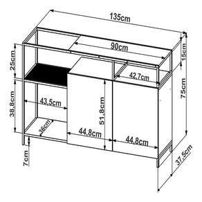 Buffet Bar Dinâmico York 135cm Estrutura Preto Fosco Vermont