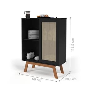 Buffet Barcelona Com Porta Em Rattan Sintético Preto O Buffet é a uma ótima escolha para sua sala!