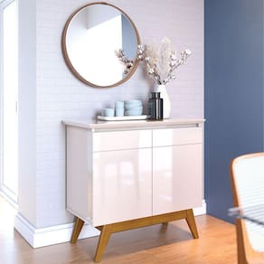 Buffet Classic 2 Pts Off White - Sabe aqueles móveis que atuam como coadjuvante no ambiente, mas mesmo não sendo protagonistas, fazem toda a diferença na sua decoração? O Buffet Classic 2 pts Off White e Freijó, com sua praticidade, conforto e design, oferece um isso para seu ambiente com matérias de qualidade, um item essencial ao seu lar e seu espaço!