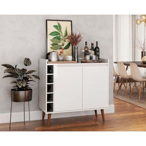 Buffet Com Adega Estilo 2 Portas Branco - Moveisaqui O Buffet com Adega Estilo 2 Portas - MóveisAqui possui um lindo design que garante a sofisticação e o requinte que seu ambiente precisa. Suas portas e adegas organizam com perfeição diversos tipos de utensílios de cozinha, além de garrafas e seu superior possui um amplo espaço para acomodar objetos de decoração e outos itens que precisam estar sempre a mãões do Produto Montado:Altura: 80,5 cmLargura: 90 cmProfundidade: 33 cmObservações:- Produzido em MDP;- Pés Retrô;- Estrutura robusta;- 05 Adegas porta garrafas;- Sem puxadores, sistema interno;- Pintura com acabamento brilho. Marca: Não Informado