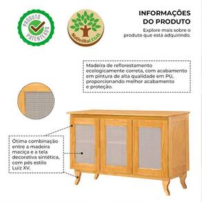 IMAGENS MERAMENTE ILUSTRATIVAS REALIZADO EDIÇÃO, PODENDO HAVER UMA PEQUENA VARIAÇÃO DE COR DEPENDENDO DE CADA TELA OU MONITOR.Buffet com Tela de Rathan SintÃtica 3p Madeira MaciÃa Deltan - Imbuia