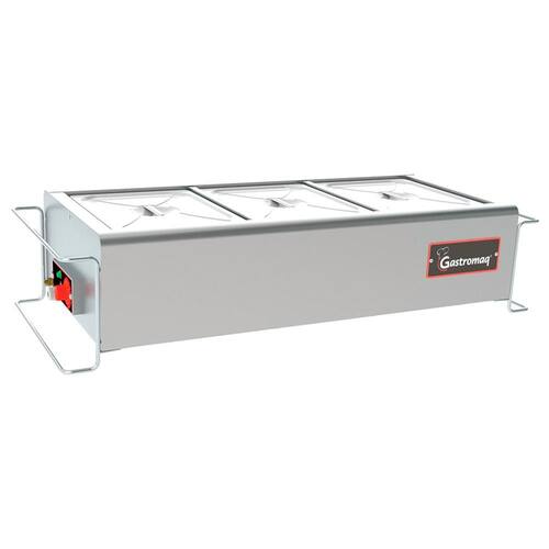 OBuffet de Mesa Aquecido Gastromaq Inox 3Cubas Tampa Inox 220V BTME 03ST Ié o equipamento ideal para você que quer manter seus alimentos sempre quentes e saborosos em seu buffet, restaurante, lanchonete ou qualquer outro estabelecimento que ofereça refeições aos clientes. Com ele, você pode conservar diversos tipos de alimentos, como carnes, massas, sopas, salgados, doces e muito mais. O equipamento é feito emaço inox 430 escovado, que garante durabilidade, resistência e facilidade de limpeza. Além disso, ele possui3 cubas comtampa de inox(1/2 GN), que permite a proteção dos alimentos, e é suspenso poraramados cromados, que dão um toque de elegância e sofisticação ao seu buffet. Ocontrole da temperatura é feito por um termostato, que é o único do mercado que permite regular atemperatura de 20 C a 120 C, de acordo com a sua necessidade. Osistema de aquecimento é por banho-maria, que preserva o sabor e a umidade dos alimentos, evitando que eles ressequem ou queimem.