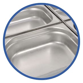Cubas gastronômicas confeccionadas em aço inox 304, padrão 1/2 x 100 nas medidas 10 x 26,5 x 32,5 cm (a x l x p);