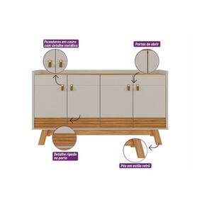 Tipo de Formato Tampo da Mesa - Tampo Retangular Tipo de Porta - Portas de Bater Diferenciais das Portas - Portas com Detalhe Ripado Quantidade de Portas - 4 Portas de Abrir Tipo de Puxador - Couro Tipo de Dobradiças - Dobradiças Metálicas Tipo dos Pés - Pés em MDF Quantidade de Pés - Móvel possui 5 pés