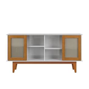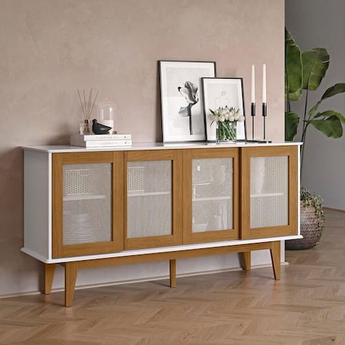 - Possui 4 portas de correr com detalhe central em fibra sintética semelhante ao rattan