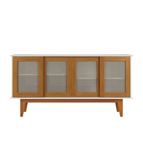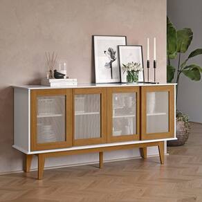 - Possui 4 portas de correr com detalhe central em fibra sintética semelhante ao rattan