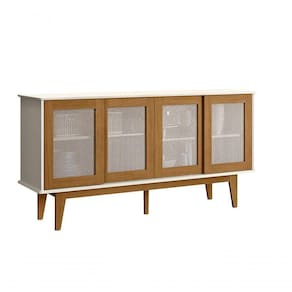 - Possui 4 portas de correr com detalhe central em fibra sintética semelhante ao rattan