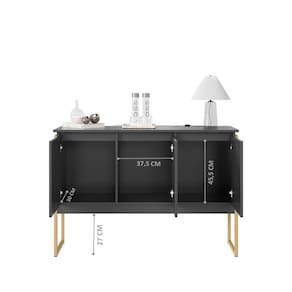 ALTURA DO PRODUTO (CM): 82 | COMPRIMENTO DO PRODUTO (CM): 38 | ESTILO: Industrial | LARGURA DO PRODUTO (CM): 120 | MATERIAL PRINCIPAL: MDP | PESO DO PRODUTO (KG): 27 | PRODUTO: Buffet | PRODUTO PRECISA DE MONTAGEM?: Sim,Sugerimos a contratação de um montador para a montagem do produto. Não nos responsabilizamos por danos causadas no ato da montagem | CONTEÚDO DA EMBALAGEM: 1 Buffet | INSTRUÇÕES/CUIDADOS: Limpar com pano macio e seco, não utilizar produtos abrasivos | GTIN: 7908790663425 | Requer montagem: Sim Cor: Preto Dourado