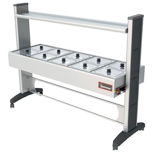 Com 10 cubas(1/2 GN), este buffet é perfeito para servir uma variedade de pratos frios em restaurantes, hotéis, eventos e muito mais. Por exemplo, ele pode acomodar saladas frescas, frutas cortadas, queijos, frios, sushi, sobremesas geladas e muito mais. Atampa de vidrode cada cuba oferece uma ótimavisualização para os alimentos, enquanto acobertura deinoxpermite mantera elegância e a apresentação dos pratos.