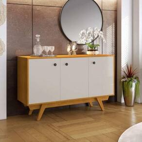 Buffet Harmonia 3 Portas Pés Madeira Maciça Jcm Movelaria Cinamomo / Off White Buffet Harmonia 3 Portas Pes Madeira Macica JCM Movelaria O Buffet Harmonia e ideal para sua sala, com design retro ele ira agregar muito mais charme e requinte ao seu ambiente. Possui 3 portas com dobradicas de pressao e puxadores em ABS, alem de possui um excelente espaco interno. Com um Amplo tampo para acomodar bebidas, objetos de decoracao, tacas, etc. Um produto 100 em MDP e pes em Madeira Macica, esses atributos garantem ao produto maior resistencia e durabilidade.
