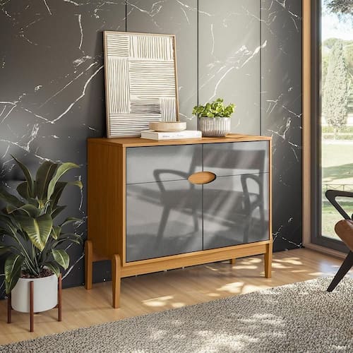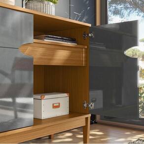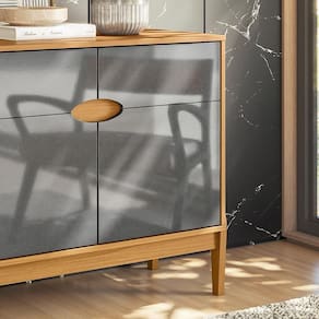- Versatilidade: Pode ser utilizado como buffet na sala de jantar, aparador na sala de estar ou móvel organizador no espaço gourmet.