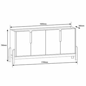 O Buffet Lizz 1.70 - Casa D Móveis é Ideal para organizar melhor sua sala de jantar ou de estar, o Buffet Lizz, possui 4 portas e duas prateleiras internas, seus compartimentos internos são ideais para armazenar e organizar diversos tipos de objetos pessoais, além de seu aparelho de jantar e demais itens que sejam necessários. Lindo, robusto e versátil, garante um espaço moderno e organizado.Dimensões do Produto Montado:Altura: 79cmLargura: 170cmProfundidade: 38,5cmObservações:– Dobradiças com sistema Soft close– Cantos Arredondados– Portas de Mdf usinadas– Pés em Madeira maciça (Pinus)Marca: Casa DModelo: LizzReferência: 050518124WATENÇÃO: Não nos responsabilizamos pela montagem deste produto. Aconselhamos a contratação de um profissional.