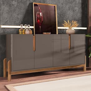 Ideal para organizar melhor sua sala de jantar ou de estar, o Buffet Lizz! . Possui 4 portas e duas prateleiras internas, seus compartimentos internos são ideais para armazenar e organizar diversos tipos de objetos pessoais, além de seu aparelho de jantar e demais itens que sejam necessários. Lindo, robusto e versátil, garante um espaço moderno e organizado. Base e laterais de MDF com cantos arredondados. Estrutura dos pés de madeira maciça.