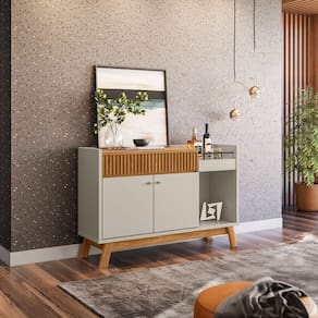 Com muito charme voce pode exibir na parte superior suas decoracoes preferidas. Alem de tudo, o Buffet Lucca dispoe de duas portas de abrir e uma gaveta corredica telescopica com detalhe ripado para que voce possa guardar com estilo aqueles objetos uteis do dia-a-dia. Em um produto tao moderno nao podia faltar um local para colocar quadros ou drinques, nao e? Por isso Buffet Lucca possui um bar espelhado com hastes metalicas, que vao manter sua sala ainda mais sofisticada.