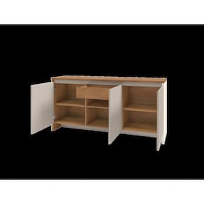 O Buffet Madrid irá agregar muito mais charme e requinte à sua sala! Com designer moderno, ele possui amplo espaço interno que irá acomodar perfeitamente qualquer tipo de objeto. Tampo e laterais em MDP de 25mm. Portas em MDF de 15mm, usinados com puxador em cava e dobradiças metálicas de 35mm, com sistema soft close. Internamente 6 nichos além de 1 gaveta com corrediças telescópicas. Sapatas protetoras que impedem que o móvel risque o piso, no qual for instalado.