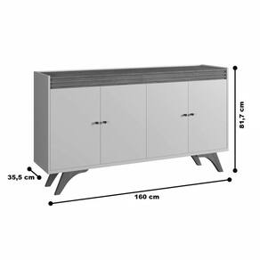 - Marca: Mavaular Móveis - Modelo: Buffet Madrid - Ambiente principal: Sala de estar - Material predominante: mdf - Acabamento: Brilho - Possui pés: Sim - Material dos pés: Madeira maciça - Possui portas: 4 - Possui prateleira interna: Sim - Peso máximo por prateleira: 10 Kg - Possui Espelho: Não - Necessita de montagem: Sim - Complexidade de montagem: Média - Sistema de montagem: Parafusos e cavilhas e girofix - Recomendações de uso, manutenção e limpeza: Pano levemente umedecido com sabão neutro