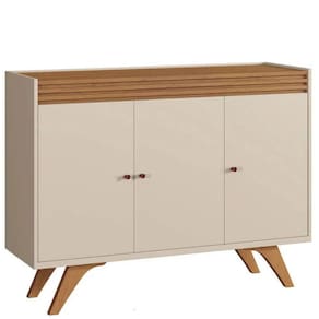 O Buffet Madrid conta com design clean e sofisticado com detalhe ripado MDF, 3 portas com batente de silicone com fechamento silencioso, para melhor durabilidade do seu móvel, Possui também uma prateleira interna e pés de madeira maciça. As cores disponíveis são off white/Naturalle e Platinum/Naturalle.