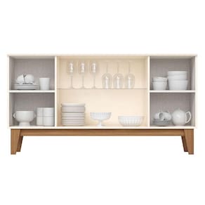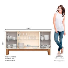Buffet para Sala de Jantar Eiffel com Portas de Vidro Off White Nature Henn
