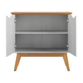 Tampo chanfrado em MDF de 25 mm Cantos arredondados Pés em madeira maciça Puxadores Cava Prateleiras organizadoras espaçosas