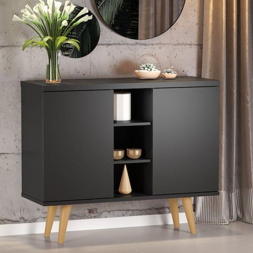 Buffet Saymon 2 Portas 3 Nichos Pés Palito Viero Móveis Preto