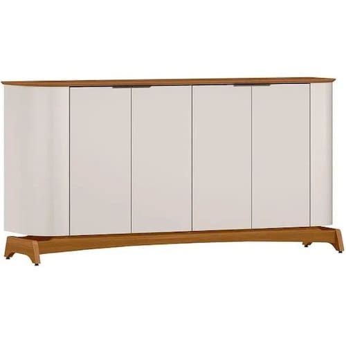 Buffet Serena com 4 Portas e Pés de Madeira Maciça New Ceval O Buffet Serena com 4 Portas e Pés de Madeira Maciça New Ceval é a fusão perfeita de estilo e funcionalidade para sua casa. Com quatro portas, oferece amplo espaço interno para organizar seus utensílios e louças, mantendo tudo arrumado e acessível. Seus pés de madeira maciça garantem estabilidade e durabilidade, elevando a peça com um toque de elegância natural. O design moderno e clean se adapta a diversos ambientes, desde a sala de jantar até a sala de estar, complementando a decoração com sofisticação. Uma escolha versátil e atemporal para quem busca qualidade e beleza em um único móvel.\nMEDIDAS\nAltura 82 cm\nLargura 160 cm\nProfundidade 39 cm\nCARACTERÍSTICAS\nFabricante New Ceval\nModelo Buffet Serena\nGarantia 3 meses\nTipo de produto Buffet\nAmbiente Sala de Jantar\nMaterial MDF\nMaterial Pés Madeira Maciça\nQuantidade de Gavetas Não Possui\nQuantidade de Portas 04\nAcabamento Pintura UV\nTipo de Porta Bater\nTipo de Dobradiça Metálica\nEstilo Moderno\nNecessita Montagem Sim\nAcompanha Manual de Instalação Sim\nINFORMAÇÕES IMPORTANTES\nObjetos decorativos que porventura apareçam na foto, não acompanham o produto. Não nos responsabilizamos pela montagem/instalação dos produtos.\nMontagens, desmontagens e instalações são responsabilidades do cliente. Indicamos que contrate uma empresa de montagem ou um montador de sua confiança.\nAlém disso, favor verificar se os pés e acessórios estão dentro do forro inferior do produto. Em suma, todas as informações divulgadas sobre o produto são de responsabilidade do Fabricante.\nAs cores do produto podem variar de acordo com o seu monitor, a iluminação do ambiente em que você está e até mesmo a sua percepção visual. Além da cor, pequenos detalhes e acabamentos podem não ficar evidentes na foto, por isso as imagens são meramente ilustrativas.