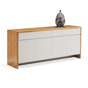 Buffet Sevilha Univ 180 Cm Laca Cinza Claro Off White Brilhante Com Carvalho Mel Com design mais clean, o buffet Apolo é uma ótima opção para ambientes urbanos. Com medidas amplas, ele possui compartimentos internos que permitem guardar louças, copos e taças, mantendo-os sempre organizados. Já o tampo pode servir de apoio para vasos, objetos decorativos e bebidas. Sua estrutura é feita em MDF, com acabamentos em UV (Ultra Violeta) e Laca Alto Brilho Vitro, tecnologia italiana que 4x mais resistência a riscos. Garantia (via): 6 | DepthHeightFloorToTop: 80 CM | Cor: Off White, Mel | DepthFrontToBack: 50 CM | Materiais: MDF | Estilo de Decoração: Moderno | Linha: Basic | Marca: Todos Móveis | Atributos: Versátil, Resistente | Área de uso: Interna | Garantia (tempo): 6 meses | Garantia (descritivo): Garantia contra de fabricação de 06 meses. Consulte as nossas políticas. | Peso (kg): | Medidas: Largura (cm): | Medidas: Profundidade (cm): | Medidas: Altura (cm): | Entregue Montado?: Não | Possui Manual de Montagem?: Acompanha o Produto | Origem do Produto: | Conservação e Manutenção: Limpeza com pano úmido em solução de água ou detergente neutro. Secar em seguida. | Acabamento: Brilhante | Tipo de Porta: Porta Articulada | de Gavetas: 2 gavetas | Estado de Origem: RS | de Portas: 4 Portas | Conteúdo da Embalagem: 1 Buffet | Height: 80 | Width: 180 CENTIMETERS | SideToSide: 50 CENTIMETERS Marca: Não Informado