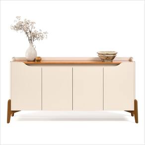Buffet Studio 1,60m Off White Nature com 4 Portas e Pés em Madeira Maciça Imcal