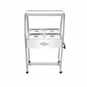 A função do Buffet térmico SPOLU é manter os alimentos servidos em suas cubas quentes enquanto em exposição. Possui cubas fabricadas em aço inox 201, tanque, tampas e moldura externa em aço inox 430 e estrutura de sustentação tubular. Sua resistência blindada é confeccionada em aço inox e controlada por um termostato com escala de 30ºC a 120ºC. Possui uma lâmpada piloto em seu painel indicando a função liga/desliga do termostato. Para facilitar a movimentação e o deslocamento a estrutura tubular é dotada de rodízios giratórios. Produtos SPOLU - CONCEITO DE QUALIDADE.