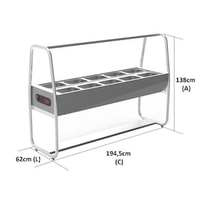 - 10 Cubas Gastronômicas (GNs) inclusas, confeccionadas em aço inox padrão 1/2 (aprox. 7 litros).