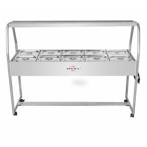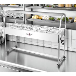 A função do Buffet térmico Infantil SPOLU é manter os alimentos servidos em suas cubas quentes enquanto em exposição. Possui cubas fabricadas em aço inox 201, tanque, tampas e moldura externa em aço inox 430 e estrutura de sustentação tubular. Sua resistência blindada é confeccionada em aço inox e controlada por um termostato com escala de 30ºC a 120ºC. Possui uma lâmpada piloto em seu painel indicando a função liga/desliga do termostato. Para facilitar a movimentação e o deslocamento a estrutura tubular é dotada de rodízios giratórios. Produtos SPOLU - CONCEITO DE QUALIDADE.