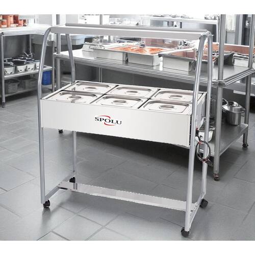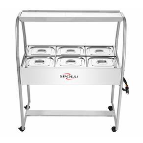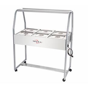 A função do Buffet térmico Infantil SPOLU é manter os alimentos servidos em suas cubas quentes enquanto em exposição. Possui cubas fabricadas em aço inox 201, tanque, tampas e moldura externa em aço inox 430 e estrutura de sustentação tubular. Sua resistência blindada é confeccionada em aço inox e controlada por um termostato com escala de 30ºC a 120ºC. Possui uma lâmpada piloto em seu painel indicando a função liga/desliga do termostato. Para facilitar a movimentação e o deslocamento a estrutura tubular é dotada de rodízios giratórios. Produtos SPOLU - CONCEITO DE QUALIDADE.