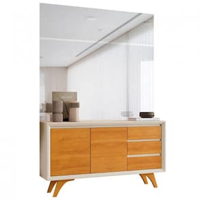 Características: Marca: Mavaular Modelo: Buffet Piazza Pés: Madeira Maciça Possui Portas: 2 portas Possui gaveta: 3 gavetas Prateleiras internas: 2 prateleiras Dobradiças em Slow motion Puxadores de cava unha Necessita de montagem: Sim Complexidade de montagem: Média Sistema de montagem: Parafusos e cavilhas e girofix Montagem e montador: Não inclusos Recomendação de montagem: Seguir a orientação conforme o manual qua vai junto ao produto Quantidade de volumes: 02 Situação do produto enviado: Novo e desmontado na caixa Recomendações de uso, manutenção e limpeza: Pano levemente umedecido com sabão neutro Obs.: Espelho Não Incluído
