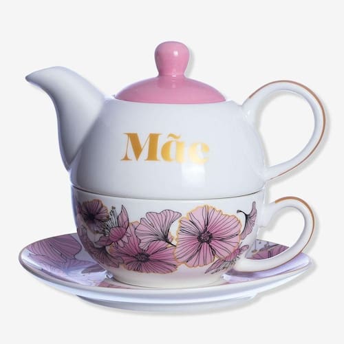 Bule 2 Em 1 Mãe Floral Zonacriativa Depois de um dia agitado, vivendo aventuras e criando memórias incríveis com a sua mãe, você quer dar uma mãozinha para ela na hora relaxar? A gente te ajuda! Com esse bule 2 em 1 a hora do chá fica muito mais diida! O bule conta com 410ml para sua mãe fazer o chá preferido dela, e a caneca possui 260ml para ela aproveitar o sabor de cada gole! O produto é importado, feito em cerâmica, possui detalhes incríveis que vão fazer vocês se apaixonarem ainda mais pela hora do chá! Se você quer adicionar um pouco de diversão e criatividade no seu chá, a gente te ajuda! Com esse Bule 2 em 1, a hora do chá fica muito mais completa! O bule conta com 410ml e a caneca possui 260ml de capacidade, com uma alça ergonômica e um pires para você apoiar sua caneca! Não importa se é n café da tarde ou da manhã, esse kit te acompanha em todas as suas aventuras!