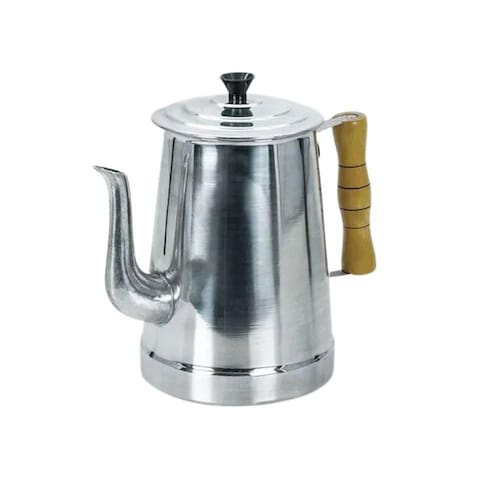 Bule de alumínio reforçado para café, composto por cabo de madeira, tampa de alumínio