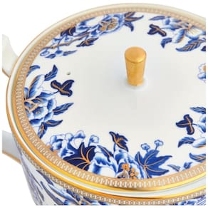 Apresentando um design marcante com tons de azul e plantas luxuosas, a Coleção Hibiscus é uma linha sofisticada de utensílios de mesa inspirados em um padrão de arquivo da Wedgwood do início do século XIX. Com elementos clássicos atemporais e realces em ouro verdadeiro, esta coleção é perfeita para adicionar detalhes decorativos à casa moderna.