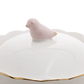 O delicado detalhe com pássaros acrescentam um charme natural e poético, convidando a contemplação da beleza da natureza durante cada chá.