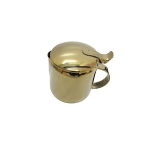 Descrição: O Bule Dourado Fineza 350ml é feito em aço inox de alto padrão com revestimento dourado de qualidade. O dourado é um revestimento com nitreto de titânio, não é pinturo e não descasca. Esse item é ideal para deixar a sua mesa do café da manhã ainda mais elegante.