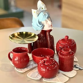 Bule Em Cerâmica Le Chef 500ml Haskraft Vermelho Bule Em Cerâmica Le Chef 500ml Haskraft Vermelho - Características Gerais do Produto: - Dimensões: 20x11,5x14cm - Capacidade: 500ml - Material Principal: Cerâmica - Linha: Le Chef - Informações Adicionais: Lave as peças com sabão neutro e esponja macia; Evite o uso de produtos abrasivos; Enxágue com água em abundância; Para secar utilize um pano seco e macio; Evite quedas para não danificar o produto; Em caso de quebra produzirá cacos cortantes e perfurantes; Pode ir ao micro-ondas e à lava-louças; Não apto ao forno; Seguir as instruções de uso descritas na caixa;