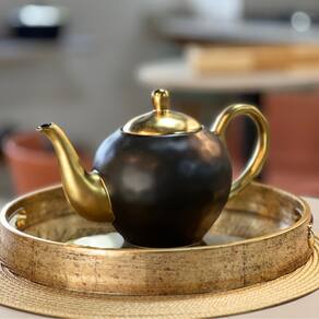 Elegância Duradoura: Design marcante que une o clássico ao dourado, elevando o ritual do chá com um toque luxuoso.