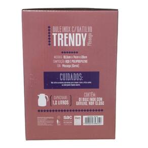 Com design moderno e funcional, o Bule Inox com Gatilho Trendy chegou para completar a sua cozinha. Ideal para servir um bom café ou aquele chá especial, seu corpo e ampola são produzidos em inox e demais peças em polipropileno e sua capacidade de armazenamento é de 1,2 litros.