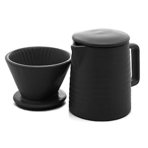 Praticidade com charme na hora do café: O bule acompanha suporte para filtro compatível com (102) e tampa, permitindo coar e servir diretamente na peça, ideal para quem aprecia o ritual do café passado na hora. Design clean e atemporal: Com acabamento preto e linhas simples, o bule combina facilmente com qualquer estilo de cozinha ou mesa posta, do clássico ao moderno. Capacidade ideal para servir: Com 600ml, é perfeito para preparar até 3 xícaras de café, sendo uma ótima escolha para momentos a dois ou pequenas pausas no dia.