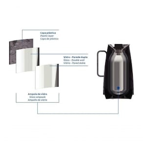 Modo de Uso: ;Recomendamos pré-aquecer/pré-refrigerar o produto com água antes do uso para manter a bebida aquecida/fria por mais tempo. Para evitar vazamentos, não encha o produto até o seu topo. Não agite o produto; Não olhe diretamente para dentro; Não coloque gelo seco, refrigerante, bebidas gaseificadas ou líquidos que possam gerar alta pressão; Cuidado ao manusear o produto, não deixe bater ou cair. Se vier a acontecer, certifique-se que não fiquem resíduos de vidro no interior; Todo manuseio de vidro (material frágil) deve ser feito com total atenção, e este produto com ampola de vidro não foge a essa regra; Não beba diretamente da garrafa; Verifique frequentemente o aperto das peças rosqueáveis (fundo/base); Não coloque bebida quente e, em seguida, bebida gelada ou vice-versa, pois isso pode danificar a ampola; Mantenha fora do alcance das crianças; Após o uso ou limpeza, aconselhamos deixar o produto aberto; Não remova a ampola de vidro do produto, somente se ela quebrar ou sofrer algum dano e houver necessidade de substituição; Não use o produto para transportar ou armazenar cubos de gelo, pois podem danificar a parte interna do bule; Para minimizar o crescimento de bactérias, não use o produto para guardar leite quente ou comidas de bebês. Lave o produto somente com detergente neutro e esponja macia; Não utilize escova com pontas que possam quebrar a ampola de vidro; Se houver odores desagradáveis, utilize uma solução com a medida de uma colher (sopa) de bicarbonato de sódio dissolvida em água quente (capacidade máxima) e deixe agir por 12 horas; após, enxague bem e realize a limpeza diária.