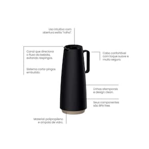 Este bule térmico também é de fácil limpeza, oferecendo mais praticidade no dia a dia da sua cozinha. Seus componentes são livres de BPA, garantindo a segurança e higiene de toda a família.