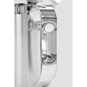 Bule Tramontina em Aço Inox para Café e Leite 10 cm 900 ml Totalmente feito de aço inox, por isso não solta nenhum resíduo nos alimentos, mantendo-os saudáveis. Altamente durável, mantém as características originais, preservando a beleza, a higiene e a durabilidade do material. Acabamento com polimento fosco, e o design com detalhes em polimento de alto brilho valoriza a peça.Higiênico e de fácil limpeza. Beleza e praticidade em seu design. Ideal para servir à mesa. Pode ser lavado, diariamente, na máquina de lavar louças. Ideal para servir café/leite. . Recomendações de uso Use apenas sabão ou detergente e uma esponja macia. Outros tipos de produto como palha de aço, poderão riscar ou prejudicar o brilho das peças. Enxágue cada item a fim de remover totalmente os resíduos dos produtos de limpeza, que, por serem abrasivos, podem danificar o inox. Sempre que possível, use água quente, pois renova o brilho das peças. Após a lavagem, enxugue imediatamente as peças, caso contrário, as substâncias químicas da água (cloro) poderão causar manchas. Evite atrito entre as peças durante o processo de lavagem e no armazenamento, para mantê-las sem riscos. Evite o contato do produto com superfícies quentes, pois elas provocam a descoloração do material. Não guarde as peças em locais úmidos. A umidade também provoca manchas.