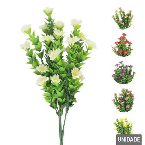 Buquê de Flores 30cm Artificial Color O Buquê de Flores Artificial em Plástico Colorido é a escolha perfeita para trazer um toque de beleza e charme a qualquer ambiente. Com flores vibrantes e realistas, esse Buquê é ideal para quem deseja adicionar cor e elegância à decoração sem precisar se preocupar com cuidados diários. Feito de plástico de alta qualidade, ele mantém sua aparência impecável por muito tempo, garantindo um visual fresco e duradouro. Seu tamanho de 30cm é perfeito para ser colocado em vasos, arranjos ou utilizado como centro de mesa, trazendo um efeito encantador e alegre ao ambiente. Buquê de Flores Artificial é versátil e pode ser utilizado em diversas ocasiões, como festas, casamentos, ou mesmo para decorar sua casa ou escritório.\nEspecificações:\nMarca : TINGS\nTipo de material : Plástico\nCores ou Estampa : Color\nDimensões do Produto : 30 X 14 X 9 CM\nDimensões da Embalagem : 30 X 14 X 9 CM\nPeso Bruto (Gramas) : 0.030
