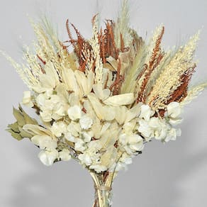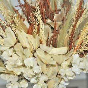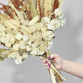 Todos os nossos arranjos e buquês são criados com flores naturais desidratadas artesanalmente. Por ser um processo manual, isso garante que cada arranjo seja único em sua composição.