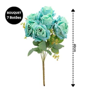 -01 unidade Bouquet Rosas Azuis 7 Botões 40cm Composição: Seda, Arame e Plástico Marca: Vivaflor Decor Marca: Vivaflor Decor