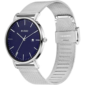 Relógio fino clássico nórdico de design de moda, linhas claras desenham o contorno de uma textura única. Este clássico relógio de pulso simples e simples será muito adequado para qualquer ocasião. É bastante adequado para um presente com pacote elegante. O mostrador azul redondo com movimento japonês de quartzo faz com que o relógio mantenha um bom tempo. Data de exibição analógica às 3 horas, é fácil de ler o tempo. A faixa de malha de aço inoxidável muito confortável no pulso, você pode facilmente ajustar o comprimento da correia. Resistente à água: Resiste respingos, suor. ótimo para todos os tipos de negócios, atividades casuais, internas ou no dia a dia, mas NÃO é adequado para natação ou banho e outras atividades subaquáticas. Diâmetro da caixa do relógio: 41mm * 7.2mm. Assista ao comprimento da banda 89mm * 108mm, banda wideth:20mm. Peso líquido:64G Pacote de relógio: 1 x relógio BUREI. 1 x Saco de relógio. 1x Manual do Usuário. 1 x remover a ferramenta de link.