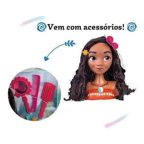 O novo lançamento da Cotiplas que vai encantar as meninas e os fãs de Moana Boneca Moana Busto, feita em vinil 100% atóxico, vem com acessórios para Você criar vários penteados Divirta-se com essa linda boneca